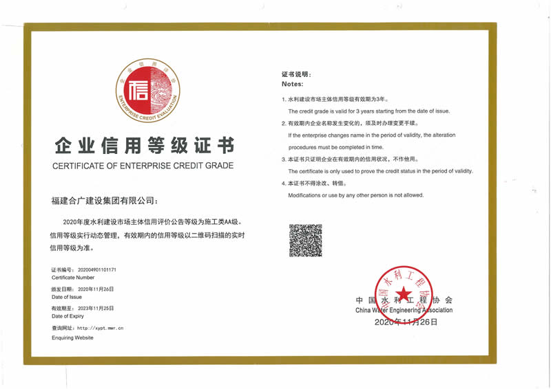 • 2020年水利信用評價施工類AA級